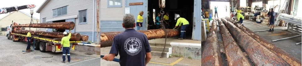 Wesbeam donated several 15 metre long logs and provided the harvesting, processing and transporting of the 3 tonnes of pine used for the masts of the replica Duyfken.